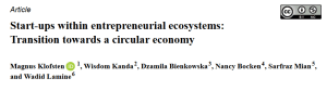 Circular Economy Jun. 24 Start-ups within entrepreneurial ecosystems: Transition towards a circular economy Magnus Klofsten, Wisdom Kanda, Dzamila Bienkowska, Nancy Bocken, Sarfraz Mian, Wadid Lamine